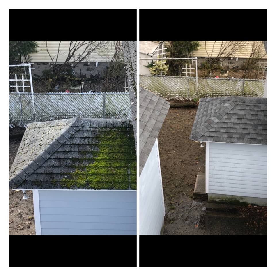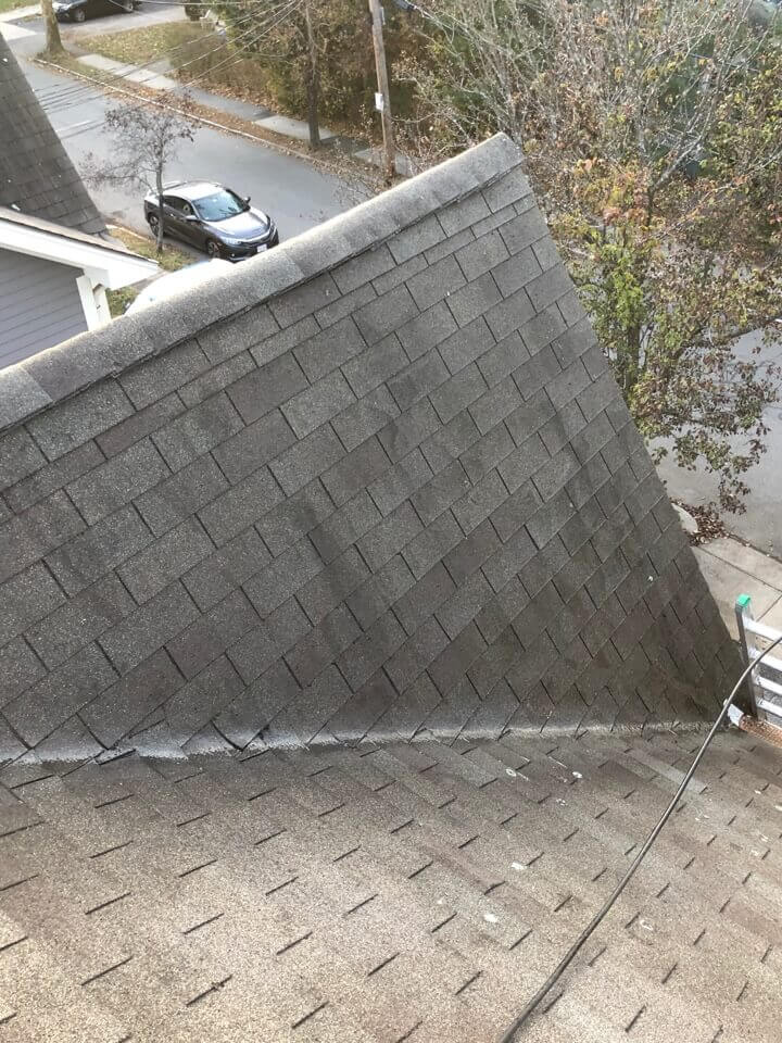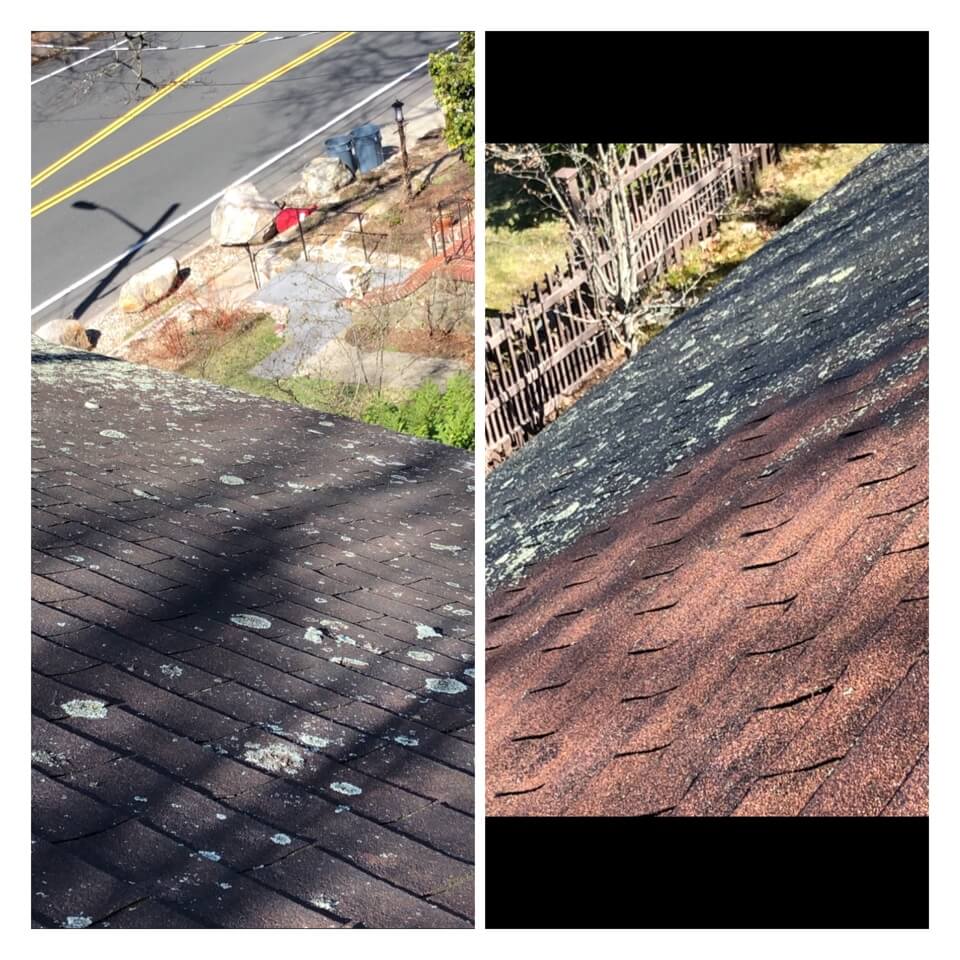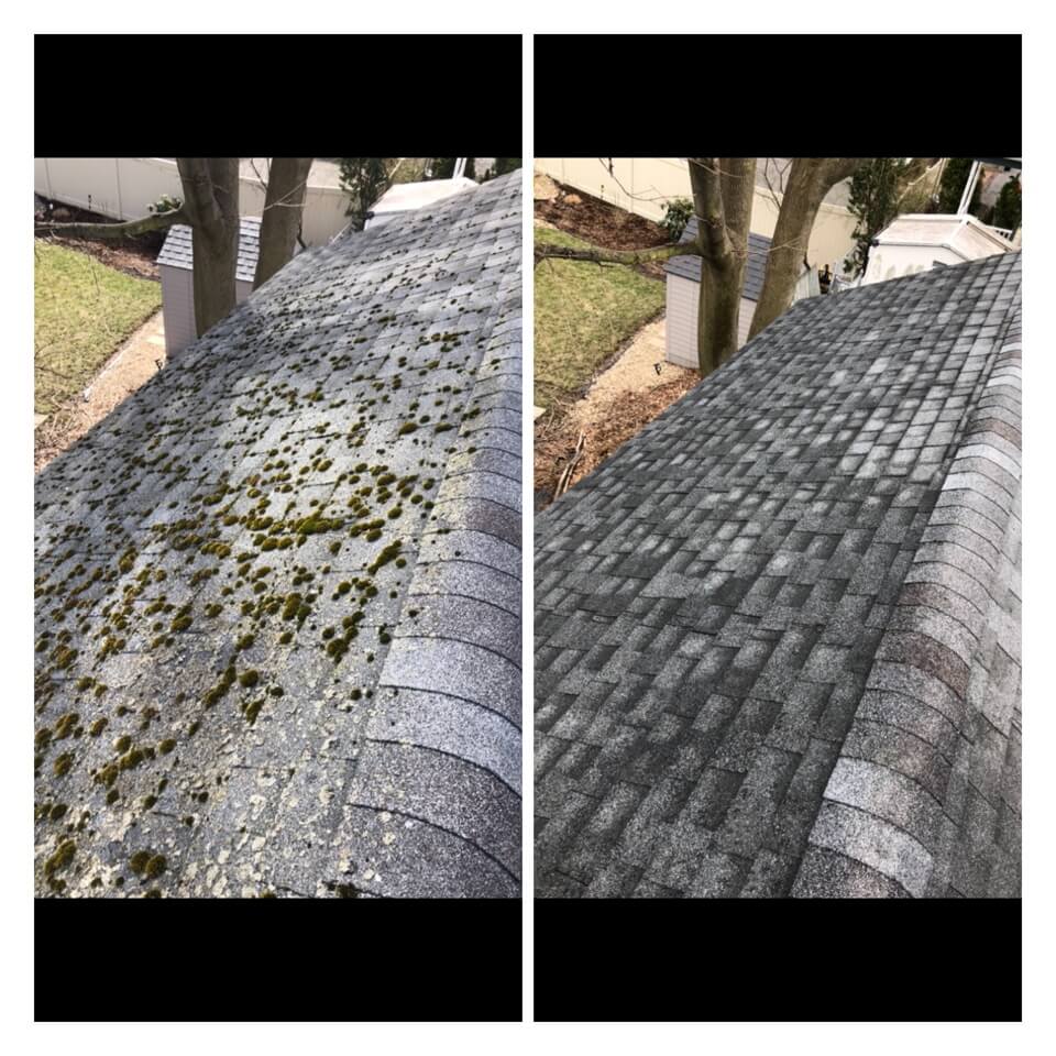 HiCleaners is the most experienced company in Rowley, MA that deals with roof washing and roof soft washing. All of our employees are trained to recognize precise solution mixing ratios to provide you with the safest and most effective soft washing service. Roofs are a commonly neglected part of a house due to the fact that most people don’t have ladders to access it, so it is very easy to just leave it alone and forget about problems that may start to arise. Just like many home owners, discoloration and small bits of moss on a roof can be overlooked because of the misconception that it is just aesthetic. However, it isn’t just aesthetic, the moss slowly lifts the granules off the shingles which in turn shorten the life of the shingle. The moss also spreads, just like any bacteria if it is left alone for too long, it can quickly become a problem that spirals out of control. Call HiCleaners for a free quote, we only use the most advanced eco-friendly solutions and equipment to make sure the job is done right, for the safety of the employees, your plants, grass, pets, and children.